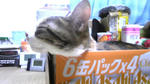 ストーブ前に 手作りハウス(笑)を置いて寝る ネコ。