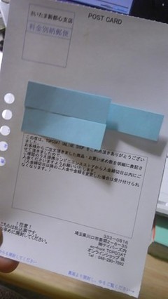 振込み用紙がハガキになってる事を知らず、